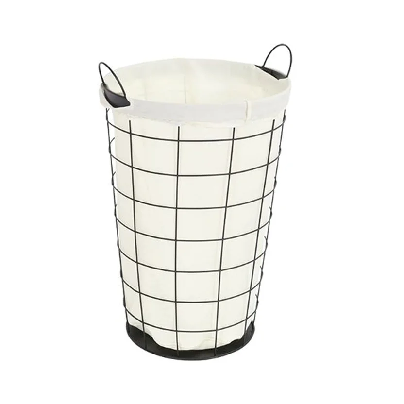 Cesto de Roupas Redondo de Aço Preto 55L com Alça e Pano Zamar
