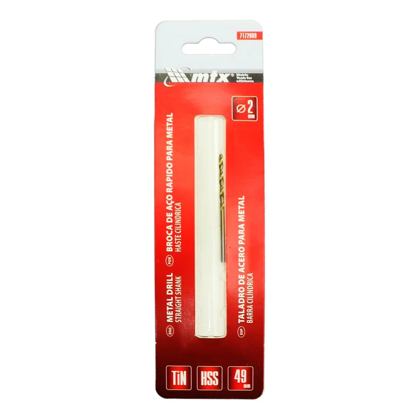 • Broca de Aço Rápido para Metal, 2 Mm, Nitreto de Titânio, Haste Cilíndrica, 1 Pçs MTX Mtx