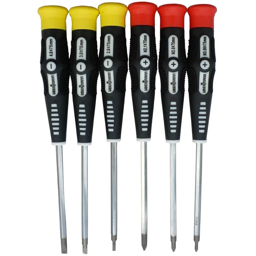 O Set Chave de Fenda Precisão 6 Peças da Ubermann é um conjunto completo de ferramentas para trabalhos de precisão. As chaves são feitas de cromo vanádio, o que garante alta resistência e durabilidade. O conjunto inclui 6 pontas diferentes, com tamanhos que variam de 2 a 4 mm. A embalagem é compacta e prática, ideal para guardar em qualquer lugar. O produto é importado e possui garantia de 1200 meses.