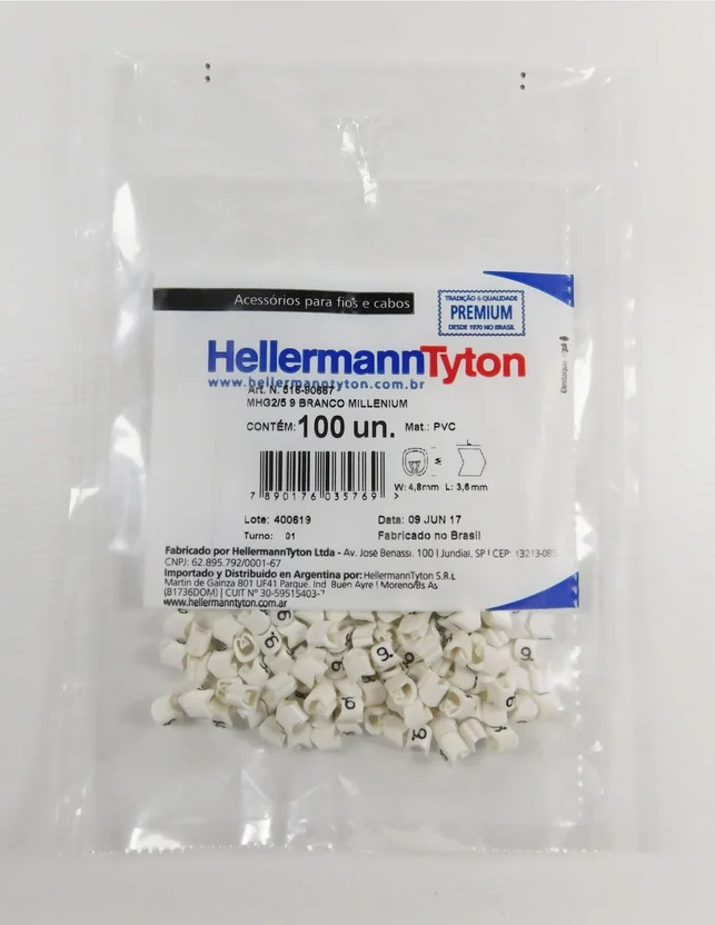 • Identificação Cabos De 0,5 A 6,00 mm Branco Número 9 Embalagem Com 100 Unidades