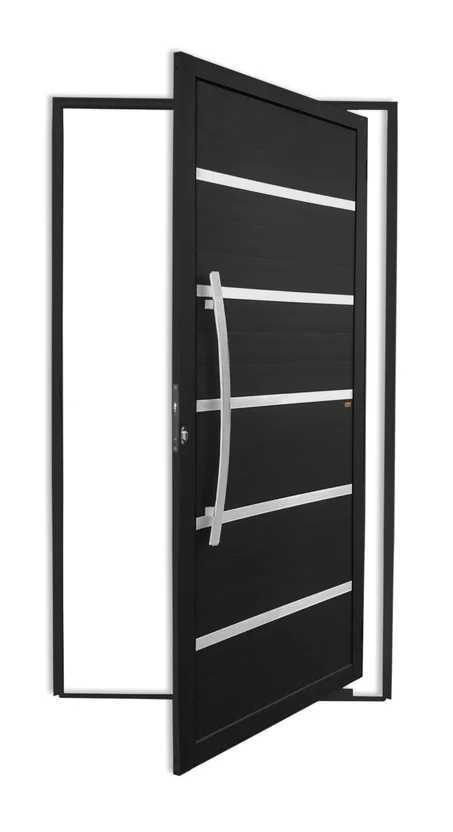 Porta Pivotante e Friso Alumínio Preto Esquerda 210x100x4,6cm Premium
