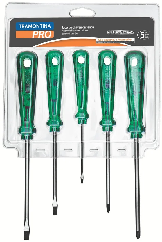O Jogo de Chave de Fenda 5 Peças Verde da Tramontina é um produto nacional, com garantia de 3 meses e feito de aço e PVC. Com um peso líquido de 0,350 kg e um peso bruto de 1 kg, o kit é leve e fácil de transportar. As chaves de fenda possuem diferentes tamanhos para atender às mais diversas necessidades, e o cabo emborrachado garante maior conforto e segurança durante o uso.