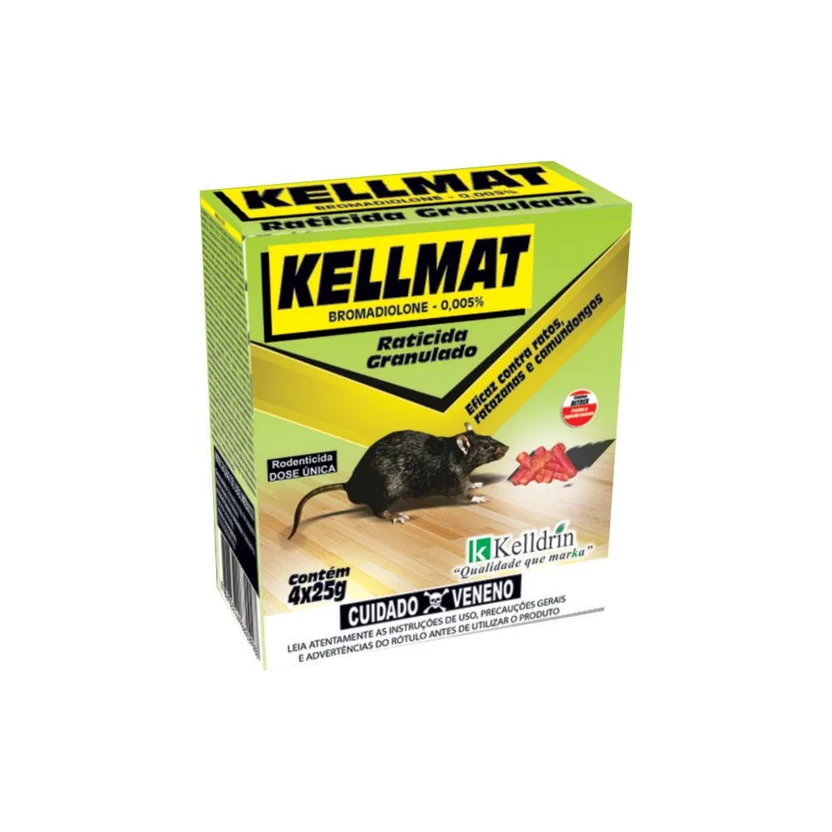 O Kellmat Raticida Granulado é composto por Bromadiolone, um ingrediente ativo eficaz na eliminação de ratos. Sua formulação em grânulos garante uma aplicação prática e segura, além de ser um produto nacional, garantindo qualidade e confiança. Com peso líquido de 0,1kg, o produto é ideal para o controle de pragas em áreas pequenas e médias.
