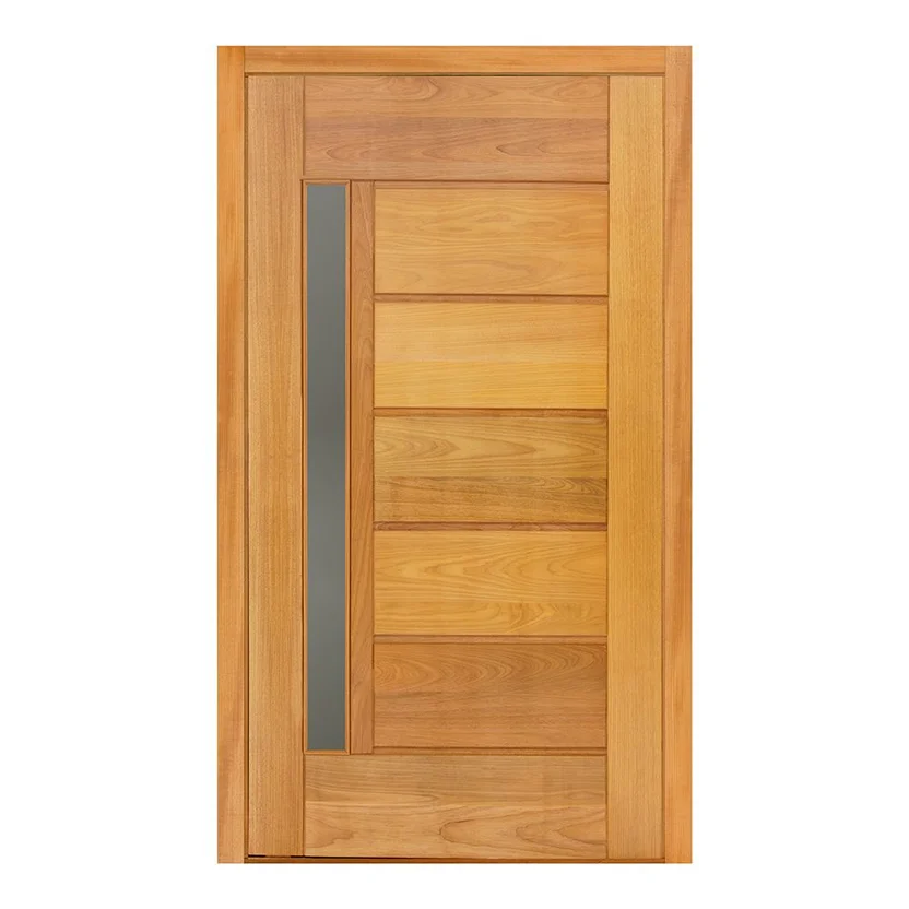 Porta Montada Pivotante Madeira Macica Tauari Natural Reversível 214x118x14cm BBB C/ Visor