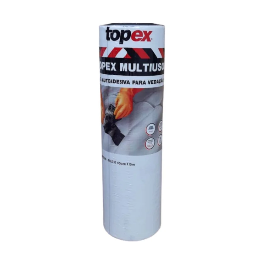A Fita Asfáltica Topex é autoadesiva, o que facilita a aplicação e garante uma vedação rápida e eficiente. Ela é resistente a diversos tipos de clima, incluindo chuva e sol, e possui alta durabilidade, garantindo que sua aplicação seja duradoura. Além disso, a Fita Asfáltica Topex é atóxica, o que garante a segurança de sua família e do ambiente. Com 10 metros de comprimento e 45 centímetros de largura, a Fita Asfáltica Topex é ideal para diversas aplicações, como telhados, rufos, chapas metálicas, dutos de ventilação e ar condicionado, sheds, capelas, vedações de domos e claraboia, reparos rápidos em baús, toldos e similares, e sistemas de deflexão térmica.